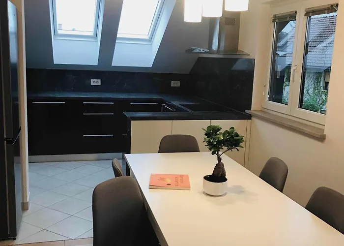 Dieses Apartment befindet sich zudem in ca. 2 km Entfernung vom Laibacher Schloss und in ca. 2,1 km Entfernung von der Mariä-Verkündigung-Kirche. Die France Prešeren Statue ist ca. 25 Minuten zu Fuß vom Apartment entfernt.